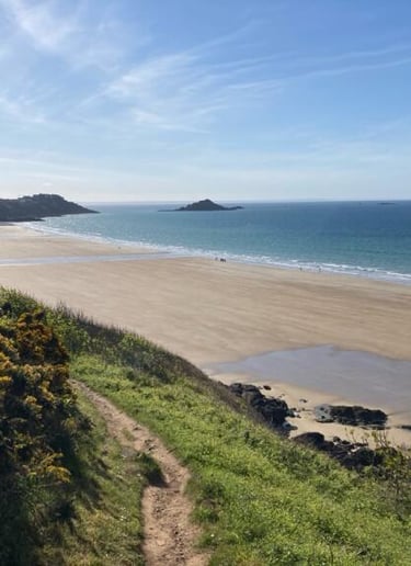 Sur les sentiers et la plage face à la mer pour éveiller une perception plus fine des sens et de l'environnement.