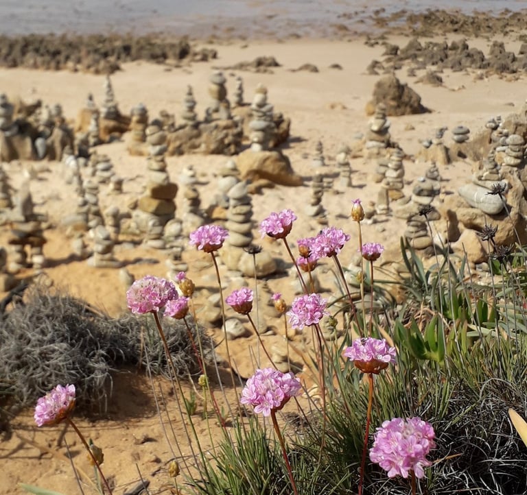 Sur les sentiers et la plage face à la mer pour éveiller une perception plus fine des sens et de l'environnement.